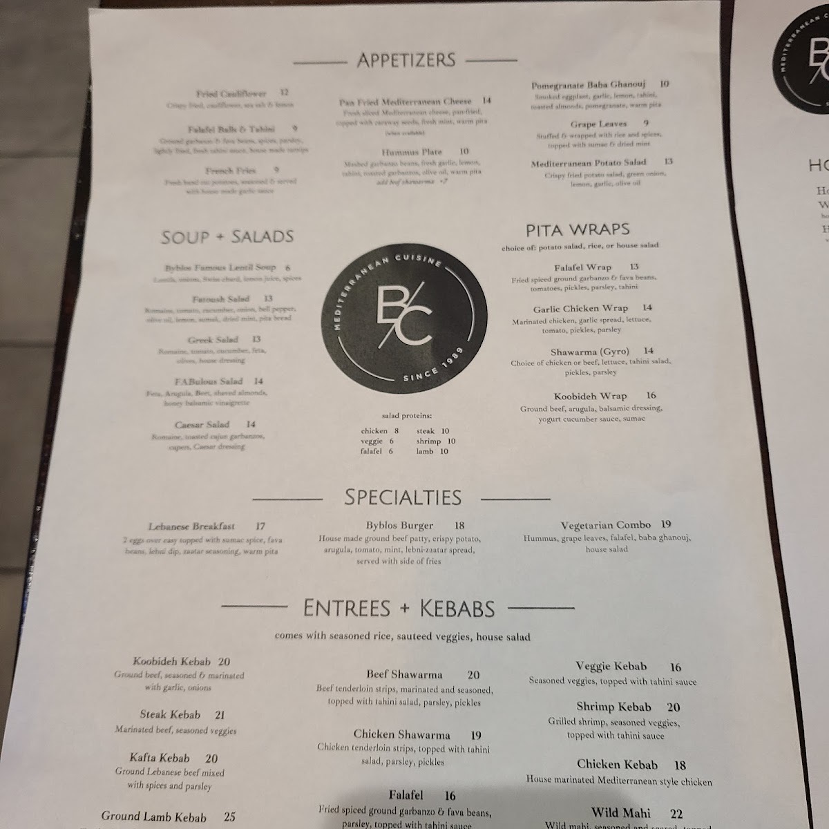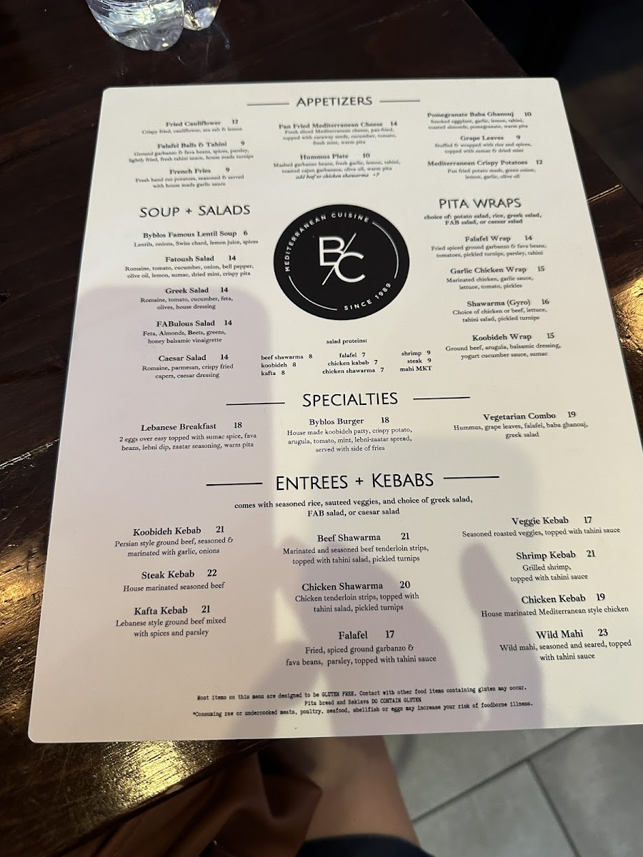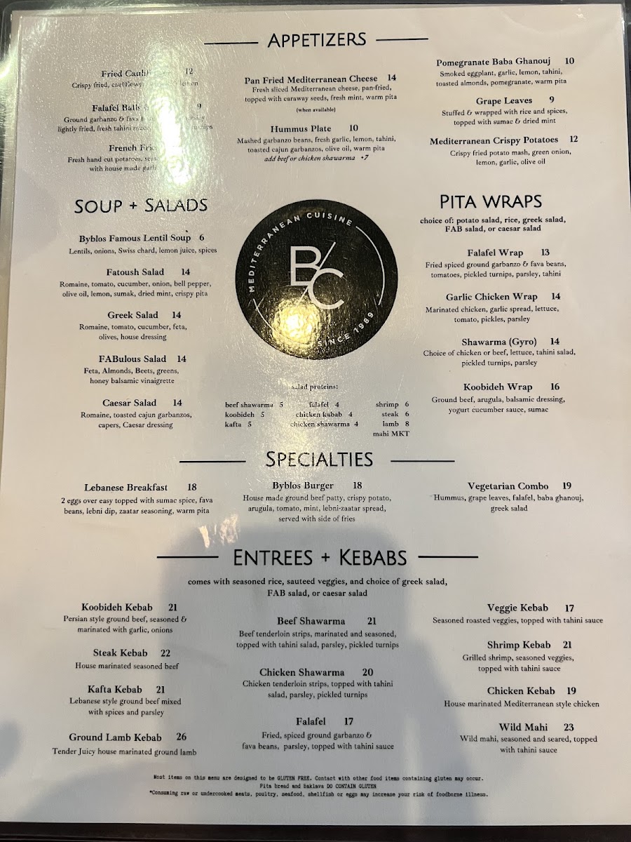 The menu at Baba G offers a variety of Mediterranean and fast food options, featuring a range of traditional dishes alongside contemporary choices. It is organized to accommodate different dining preferences, whether for a quick meal or a more substantial dining experience.